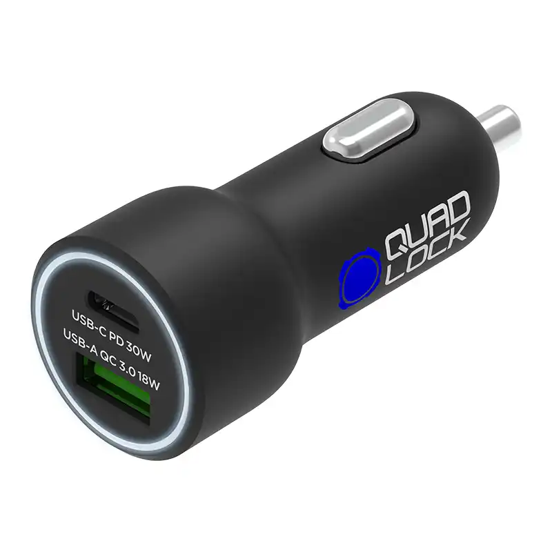 Φορτίστε εύκολα τις συσκευές σας ενώ βρίσκεστε εν κινήσει με τον φορτιστή αυτοκινήτου Quad Lock® 48W Dual USB 12V. Διαθέτοντας θύρα USB-A και USB-C, μπορείτε να φορτίσετε γρήγορα τις συσκευές σας. Το USB-A QC3.0 φορτίζει έως και 18W και το USB-C φορτίζει έως και 30W, συνολικά 48W φόρτισης. Απλώς συνδέστε το στην υποδοχή DC του αυτοκινήτου σας με το υπάρχον καλώδιο USB και φορτίστε εν κινήσει!