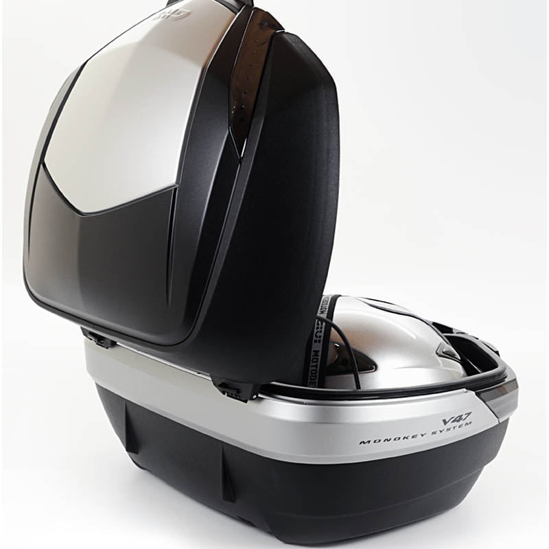 Αυτή η έκδοση της δημοφιλούς σειράς V47 ξεχωρίζει από το κομψό carbon style φινίρισμα στο καπάκι της. Με χωρητικότητα 47 λίτρα, μπορεί να φιλοξενήσει συνήθως δύο full-face κράνη. Aπό τις κορυφαίες βαλίτσες GIVI, η V47NT είναι συμβατή με μια σειρά από αξεσουάρ, συμπεριλαμβανομένης της πλάτης E134 για την άνεση του συνεπιβάτη σας, το κιτ για φως στοπ Ε135 και το τηλεχειριστήριο Ε132